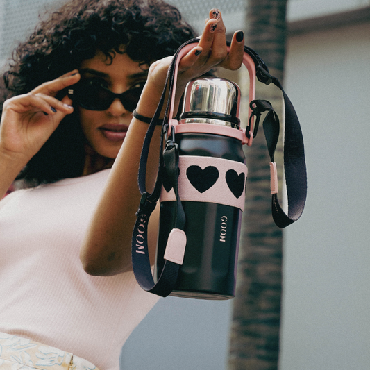 GOOM [THE GRIP] 32 oz Insulated Water Bottle with Lid, Carrying Strap and Strainer - Blush Petal