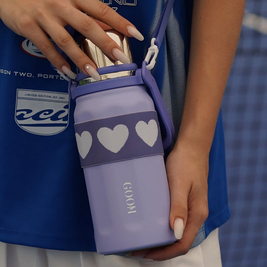 GOOM [THE GRIP] 32 oz Insulated Water Bottle with Lid, Carrying Strap and Strainer - Serenity Lavender