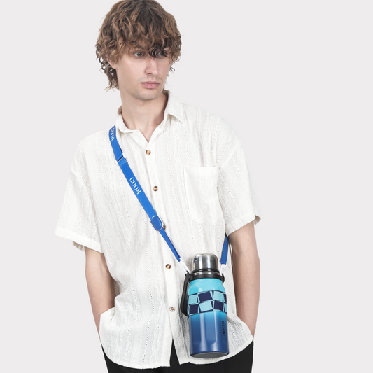 GOOM [THE GRIP] 32 oz Insulated Water Bottle with Lid, Carrying Strap and Strainer - Aqua Dream